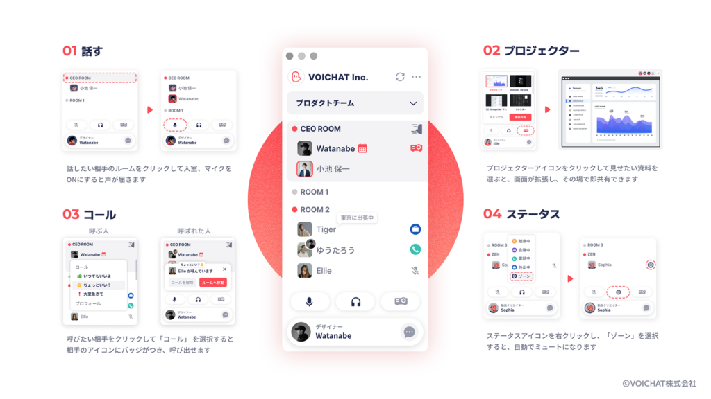 VOICHATは、「ちょっといい?」をいつでも・どこでも可能にするコミュニケーションツールです。