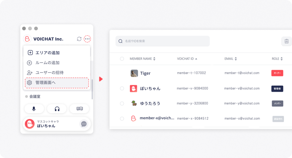 VOICHATには場所を表す言葉が3つあり、スペース>エリア>ルームの順で細分化されていきます。